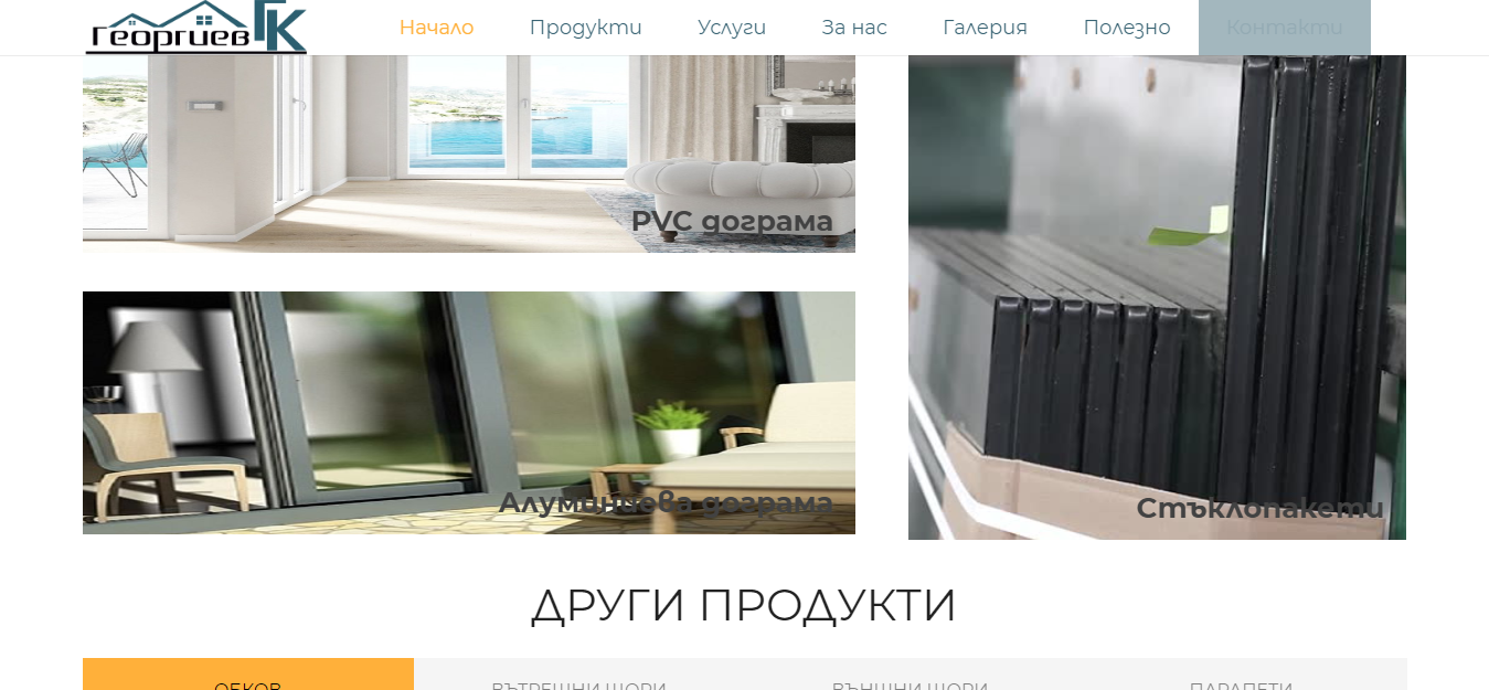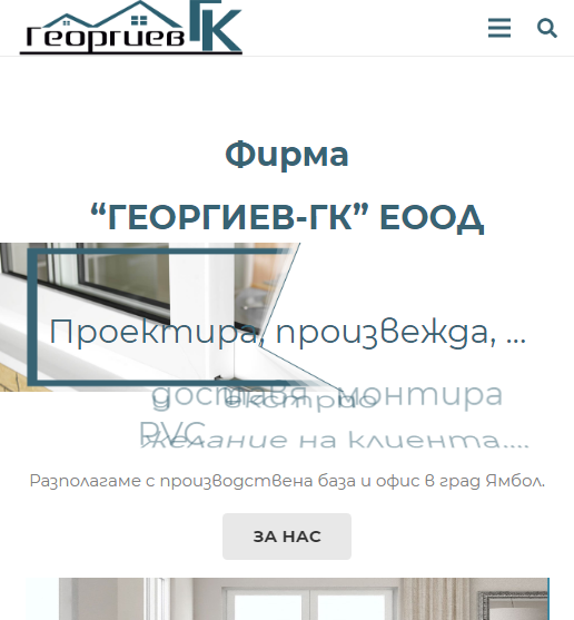 “ГЕОРГИЕВ-ГК” ЕООД, гр. Ямбол проектира, произвежда, доставя и монтира PVC и алуминиева дограма, врати, шори и парапети с всички допълнителни аксесоари и екстри по желание на клиента. Разполагаме с производствена база и офис в град Ямбол.